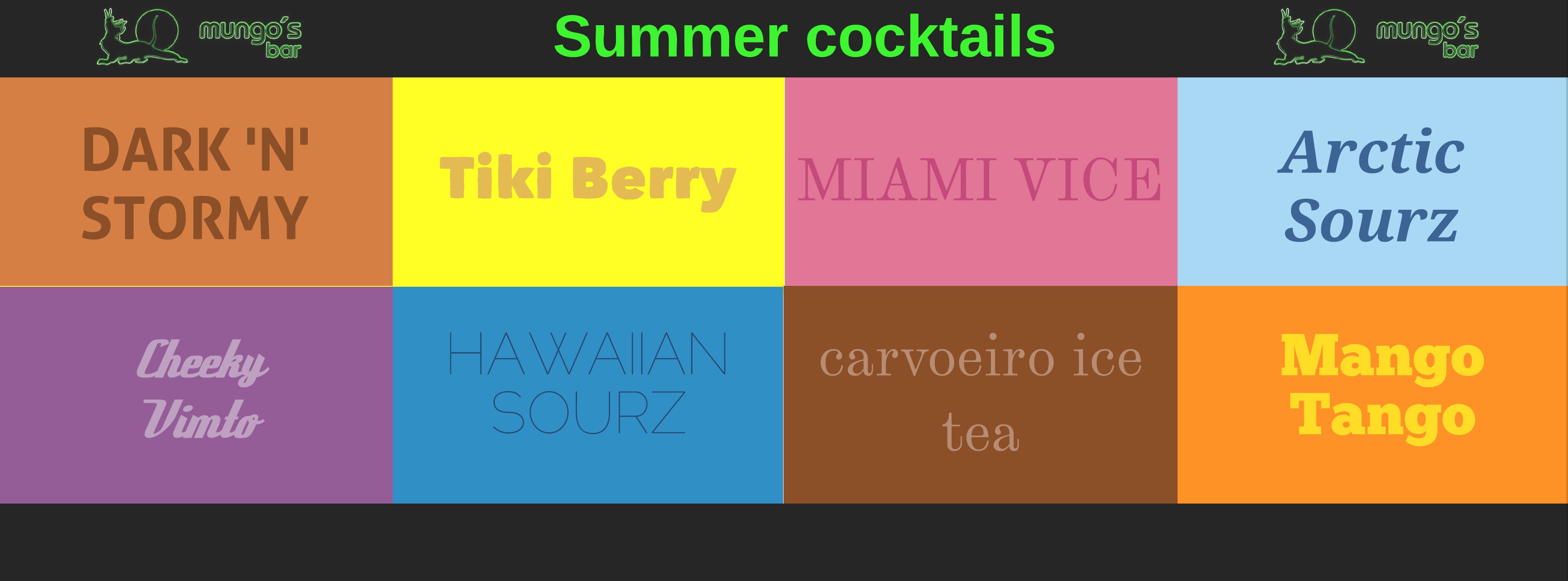 Choose from some of our classics or unique Mungo’s mixes or try some of our 2016 SUMMER SPECIALS